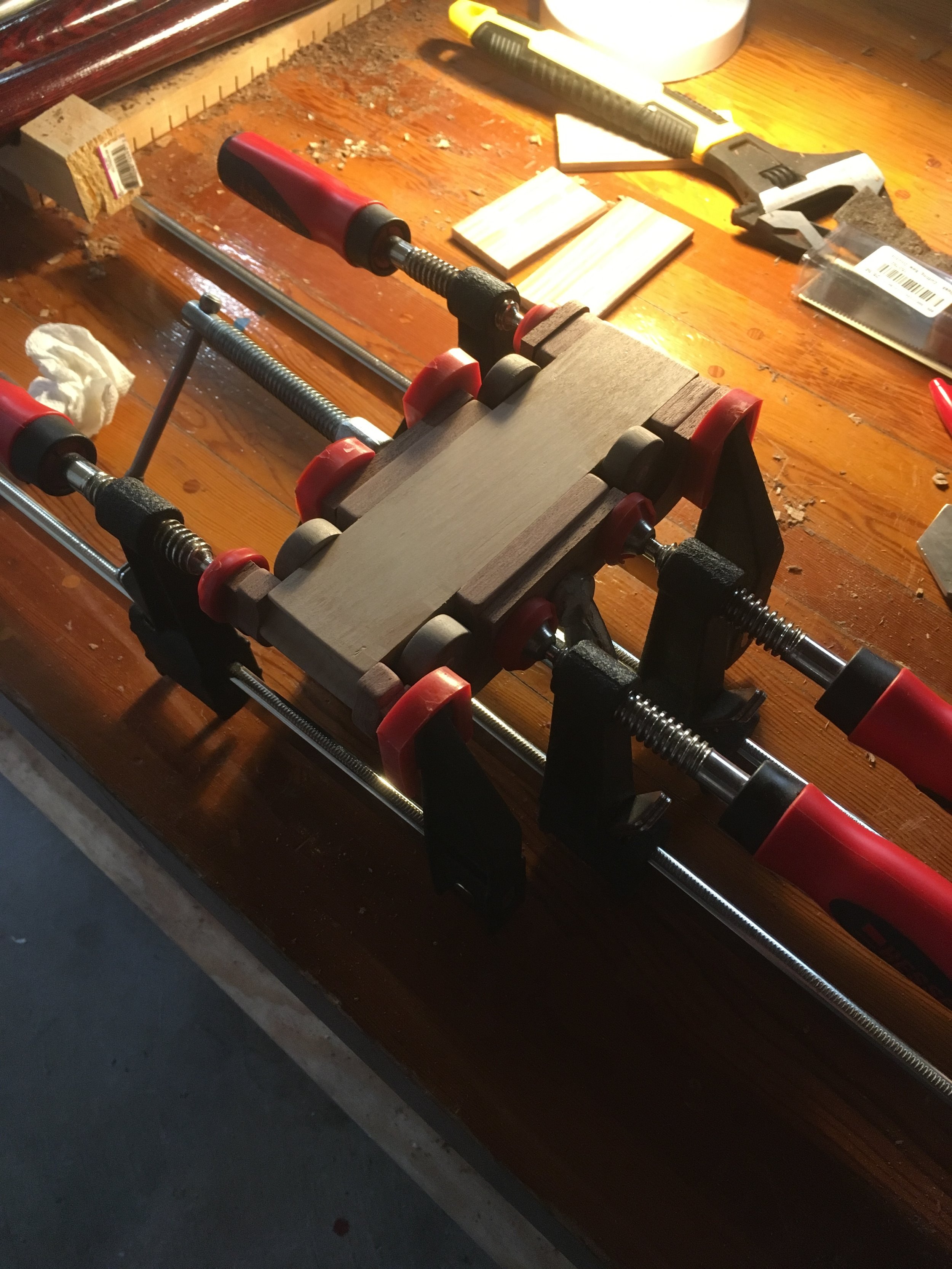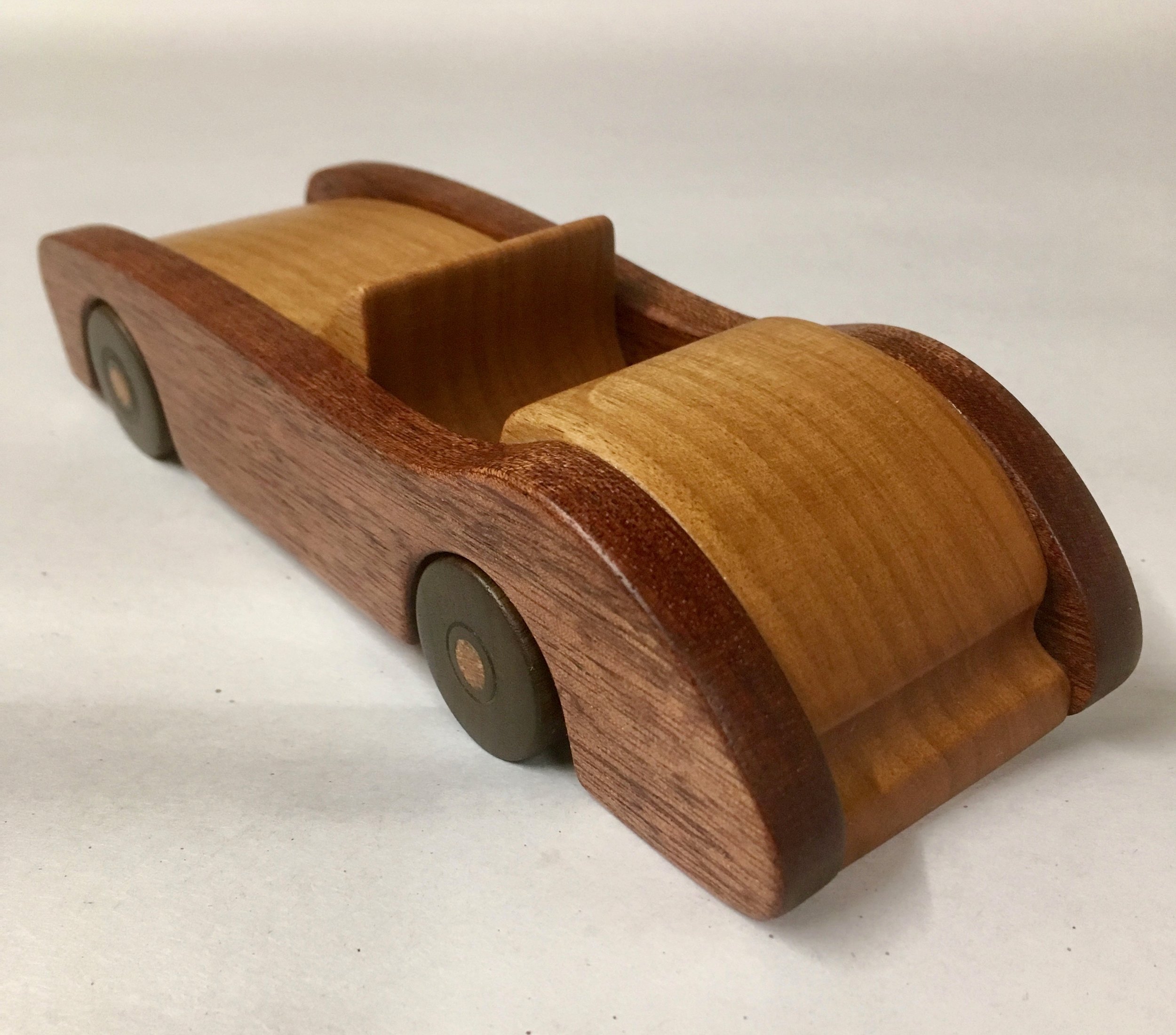 This car is made from cherry, sapele mahogany, american walnut, and white oak.